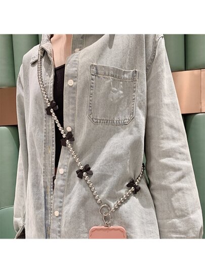 Portable Bow Decor Beaded Phone Lanyard - Black - View 1