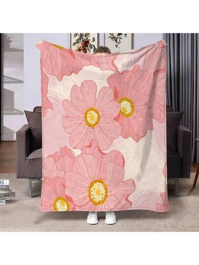 Portable Foldable Flannel Thin Blanket | Suitable For Air-Conditioned Rooms All Year Round | Essential For Office Naps, Travel | Lightweight, Easy To Store, Warm Companion | Super Soft Plush Throw Blanket, Warm And Cozy, Floral Pattern In Warm Colors, Suitable For Sofa, Bed, Perfect Gift For Birthday, Christmas - Pink - View 1