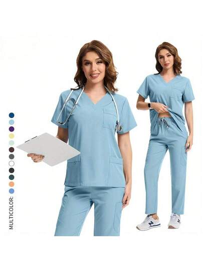 Practical Medical Scrubs Set, Top And Pants With Functional Design, Durable Easy-Care Fabric, For Healthcare Professionals Daily Wear - Multicolor - View 31