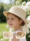 1pc Children's Hat, Spring And Summer Children's Lace Bow Grass Hat, Suitable For Girls, Used For Outdoor Beaches And Beaches, Worn For Spring Outings