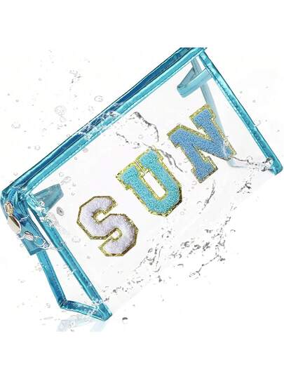 Preppy Patch SPF Clear Cosmetic Bag SPF Varsity Letter Toiletry Bag Waterproof PVC Cosmetic Case Multi-Function Zippered Pouch Makeup Bag For Beach Pool, Pencil Case Pen Pouch,Makeup Bag,Make Up Bag,Makeup Bags,Cosmetic Bag,Makeup Organiser,Travel,Makeup Pouch,Bag,Vanity,Make Up Pouch,Travel Essentials,Pouch Bag,Make Up Bags,Bags,Travel Essential,Vanity Accessories,Small Makeup Bag - Multicolor - View 1