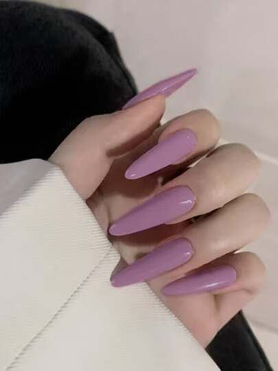 Nail Nina 24pcs Elegant & Artistic Long Stiletto Nail Tips, Solid Color, For Salon, Party, Daily, Entertainment - Purple - View 1