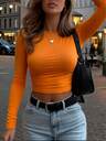 2pcs Solid Color Fitted Casual Crop Top, Casual Long Sleeve Round Neck Cropped Top, Suitable For Outings, Women Autumn/Winter T-Shirt