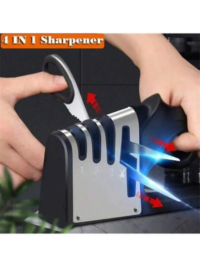 Professional Stainless Steel 4-In-1 Manual Knife Sharpener - ABS Resin, No Battery, No Power - For Kitchen Knives And Scissors - Multicolor - View 1