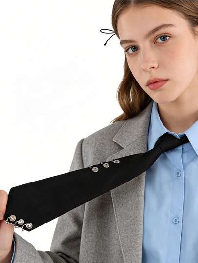 Punk Style Black Tie With Metal Eyelets And Adjustable Elastic Band, Suitable For Men's And Women's Accessories - Black - View 1