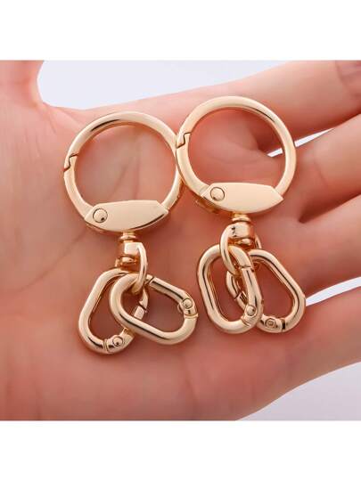 2pcs Rotating Clasp, Metal Lobster Claw Clasp With Keychain Ring, Suitable For Making Keychains, DIY Crafts, Car Accessories, Bag Charms, Campus Goth/Y2K Style Decorations - Gold - View 1