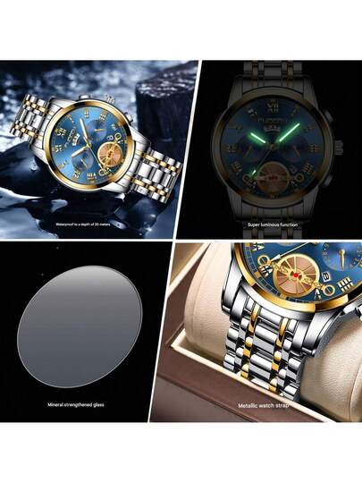 Men's Watch Relojes De Hombre Stainless Steel Quartz Classic Waterproof FNGEEN Reloj De Hombre  Invicta Watch Men Men's Self-Winding Watch Automatic Mechanical Tourbillon Stainless Steel Waterproof Luminous Luxury Dress Watch  Watch For Men Diamond Business Dress Analog Quartz Stainless Steel Waterproof Luminous Date Two Tone Luxury Casual Wrist Watch   Watches For Men With Date Luxury Big Face Waterproof Mens Wristwatch Analog Dress Two Tone Stainless Steel Man Watch Luminous Relojes De Hombre Calendar - Blue - View 1