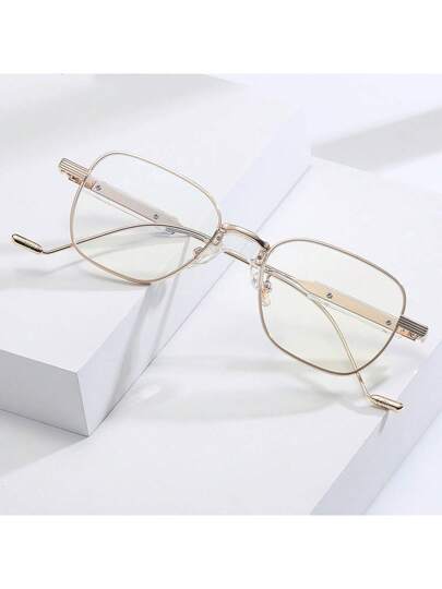 1pc Women's Fashion Metal Frame Eyeglasses With White Lenses, Suitable For Casual Wear - Gold Frame - View 1