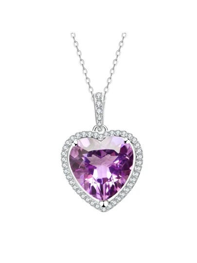 JOLEE Purple Crystal Heart Shaped Pendant Necklace - Purple - View 1