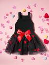 PETSIN 1pc Pet Valentine's Day Black Knit Patch Red Heart Flocked Mesh Bow Decor Cute Sweet Dog Dress