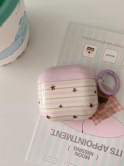 Purple Striped Star Pattern Earphone Case + Hanging Ring Compatible With Apple Pro 2/ Pro/ 4/ 3/ 2 - Mauve Purple - View 1