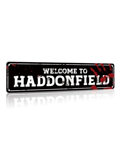 Putuo Decor 1pc Horror Movie Road Sign, Classic Metal Plaque Vintage Tin Wall Decor for Man Cave Chill Room Bedroom Club Garage, 3.9 x 15.7 Inches, Welcome To Haddonfield Street Sign - Multicolor - View 1