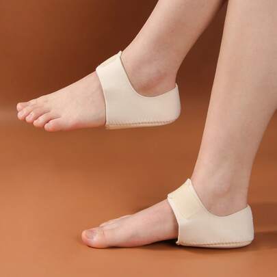 QKC 1 Pair Unisex Heel Cushion Pads, Shock Absorbing, Leg Pressure Relief, Adjustable Strap, Anti-Slip Insoles - Beige - View 1
