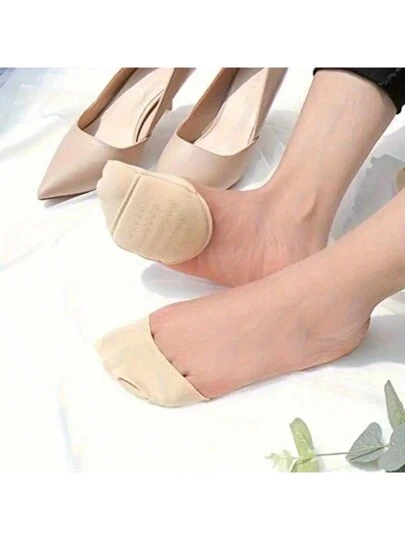 QKC 1pair Seamless Anti-Slip Ankle Socks With Forefoot Cushioning - Super Comfortable, Non-Slip Foam Grip - Perfect For Everyday Wear For Women High Heels Women Pumps And Men Sneakers Shoes Summer - Beige - View 1