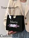 1pc Customized Gift Bag With Logo, Name, Blessing, Gift Packaging Bag, Birthday Gift Bag, Customized Packaging, Creative, High-End, Black Bow Customized Gift Bag,Multi-Functional, Ornamental,Reusable,Exquisite,Stylish,High-Quality,Colorful,Modern,Custom,Personalized,Unique,Ideal Gifts For Him,Ideal Gifts For Her,Boyfriend,Dad,Girlfriend,Mom,Family,Christmas Gift Supplies