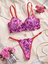 Women's Sexy Lingerie Set, Burgundy Embroidered Floral Bra And Panty 2-Piece Set, Comfortable Solid Thong, Sensual For Valentine's Day Couples