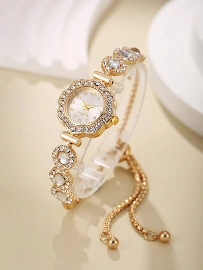 Quartz Wristwatch For Teenage Girls, Simple Design, Fashion, Daily Wear, Bracelet Watch, Party/Birthday Gift - Gold - View 1