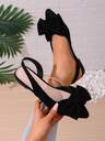 Women's Suede Butterfly & Pearl Decor Pointed Toe Shoes With Ankle Strap, Comfortable & Versatile, Suitable For Commuting, Dating, Shopping With Dresses Or Pants