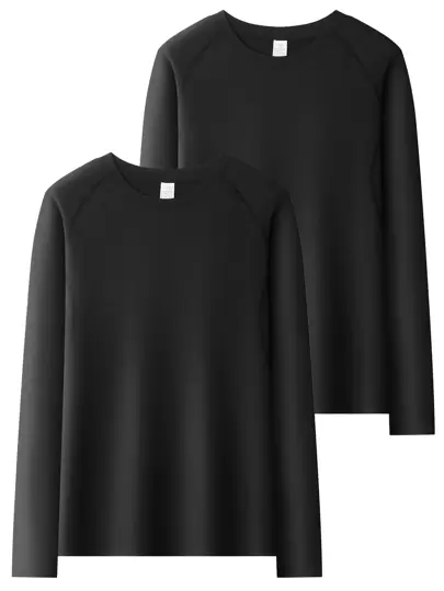 Quick-Dry Long Sleeve Men's Spring & Autumn Tight Fit Fitness Training & Running Shirt, Classic Black Gym Clothes Men - Black - View 2