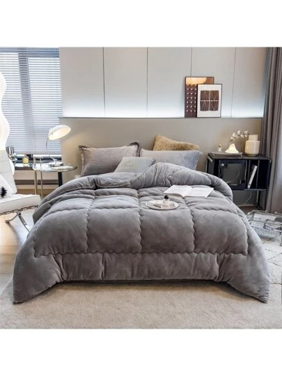 Quilted Comforter Fleece Ultra-Soft Down Alternative Filling  King Size Plush Warm Fall Winter Duvet Flannel Blanket & Bedding  Comforter - Grey - View 1