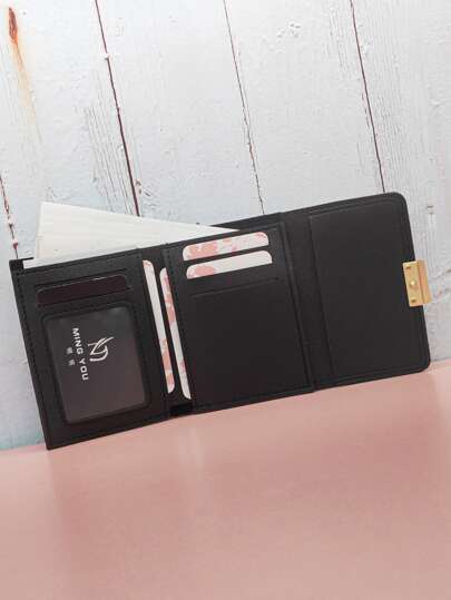 MINGYOU Quilted Detail Snap Button Fold Over Small Wallet Pocket Wallet Small Purse ID Window Tri-Fold Women Wallet, Preppy Casual Fashion Black Diamond Plaid Fold Compact Wallet Coin Purse For Back To School Four Seasons Student Perfect For Business, Work, Commute For Freshman, Sophomore, Junior, Senior Graduate Teens, Teen Girls Back To School Gift, Gift - Black - View 1