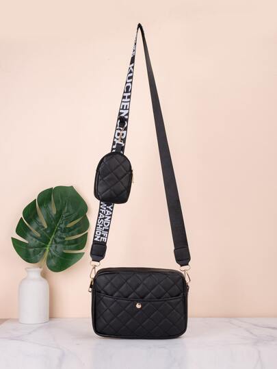 Quilted Shoulder Bag - Black - View 3