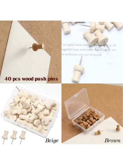 RIMEMO 40 PCS Wood Push Pins, Standard, Wooden Thumb Tacks Decorative For Cork Boards Map Photos Calendar And Home Office Craft Projects With Storage Box - Multicolor - View 1