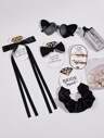 6pcs Wedding Bridesmaid Proposal Gift Hair Accessories Set: Multi-Color Versatile Scrunchies, Heart Shaped Glasses, 1 Pair Faux Pearl Earrings, 1 Pair Gold Foil Hair Clips With Cards, All Perfectly Matched, School Stuff, Faux Pearl Hair Accessories, Gifts, Hair Bands