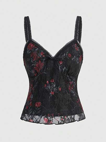 ROMWE Fairycore Women's Rose Lace Bow Decorated Camisole - Multicolor - View 1