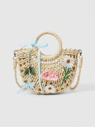 ROMWE Fashion Decal Hollow Portable Pearl Straw Bag DIY Clip Hair Flower Hairpin - Beige - View 1