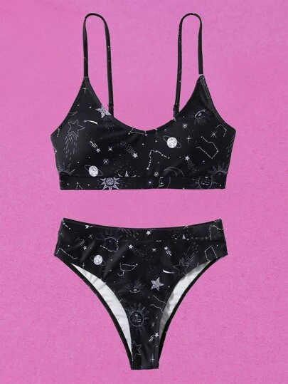 Swim EVENT Galaxy Print High Waisted Bikini For Summer Beach Vacation - Black - View 1
