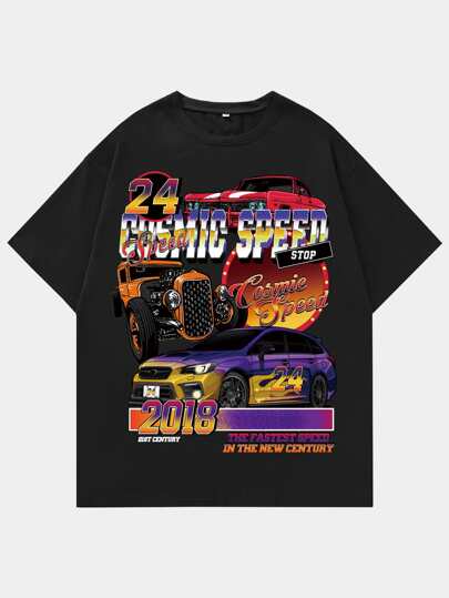 ROMWE MEN Street Life Guys Car & Letter Graphic Tee - Black - View 1