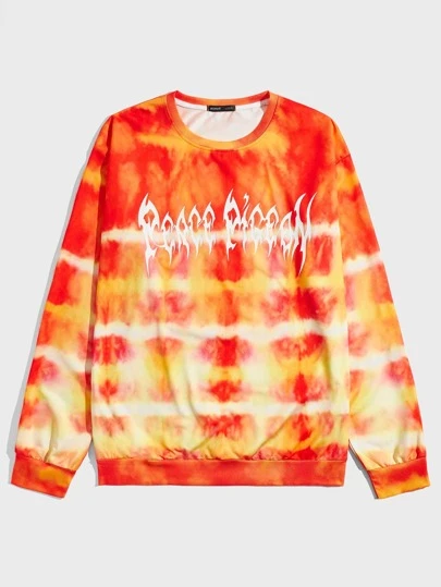 ROMWE MEN Guys Letter Graphic Tie Dye Pullover - Orange - View 1