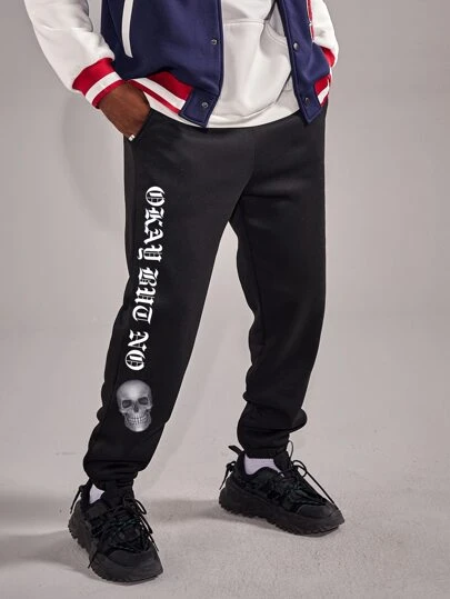 ROMWE MEN Guys Skull & Letter Graphic Sweatpants - Black - View 1