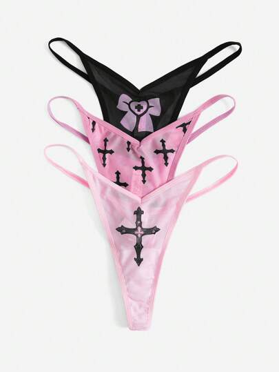 ROMWE Kawaii 3pack Graphic Print Thong - Multicolor - View 1