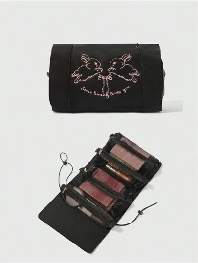 ROMWE Kawaii Rabbit Embroidered Large Capacity Portable Fashion Travel Makeup Bag - Black - View 1