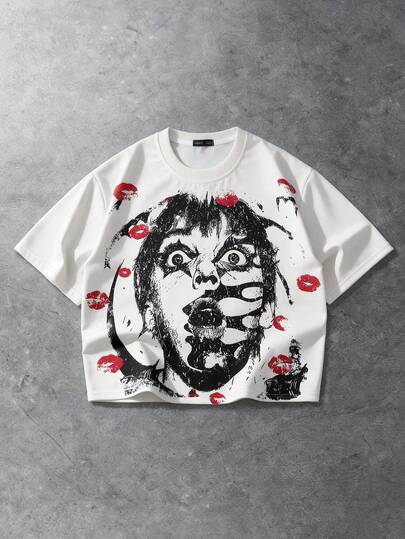 ROMWE MEN Men's Round Neck Casual Fashion Printed Short Sleeve T-Shirt, Summer - White - View 1