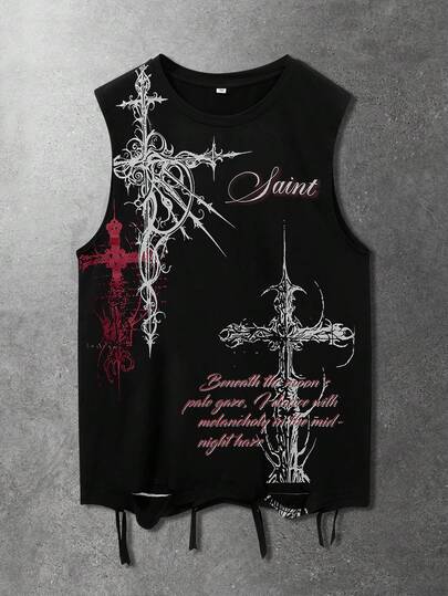 ROMWE MEN Men's Street Fashion Gothic Ripped Print Tank Top - Black - View 1