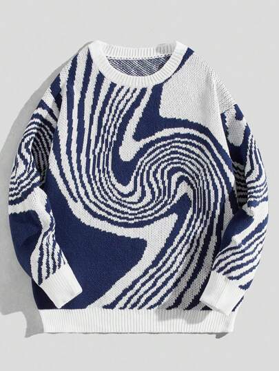 ROMWE MEN Street Life Men Graphic Pattern Drop Shoulder Sweater - Multicolor - View 1