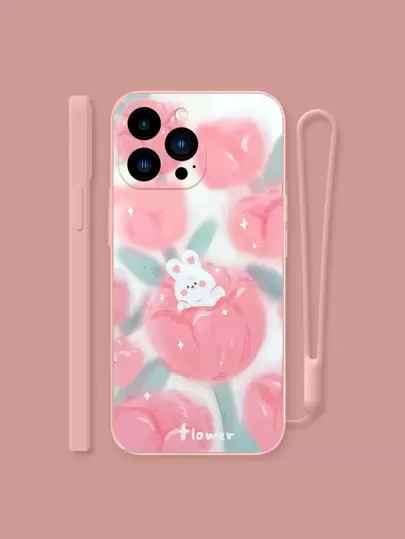 Rabbit Pattern Phone Case With Lanyard - Multicolor - View 1