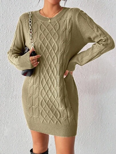 Rafferiza Women's Twist Knit Sweater Dress For New Year Clothes - Khaki - View 1