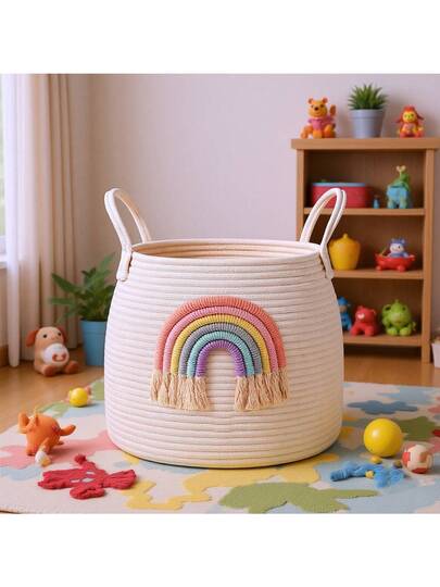 Giỏ đựng đồ giặt bằng dây đan trang trí cầu vồng, giỏ đựng đồ chơi, thích hợp cho phòng ngủ, phòng khách, đựng đồ chơi, giỏ quà cầu vồng thích hợp cho phòng bé gái và phòng chơi.