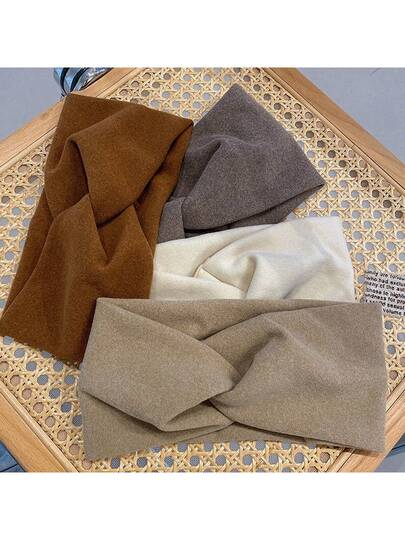 Random 1pc Autumn Winter Headband, French Broad Brim Headband, Knotted Elastic Hairbands, Hair Accessories - Multicolor - View 4