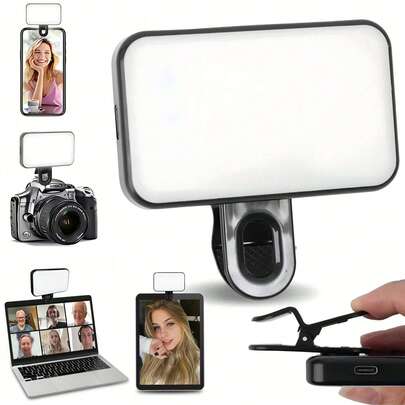 Rechargeable Clip-On Selfie Ring Light, Portable LED Selfie Fill Light Compatible With IPhone 15/14/13/12/11 Pro/Xs, A72/A71/A52/A51 And All Android Smartphones, For Selfie, Live Streaming And Various Shooting Scenarios, Compatible With Smartphones, Laptops, Tablets - Black - View 1