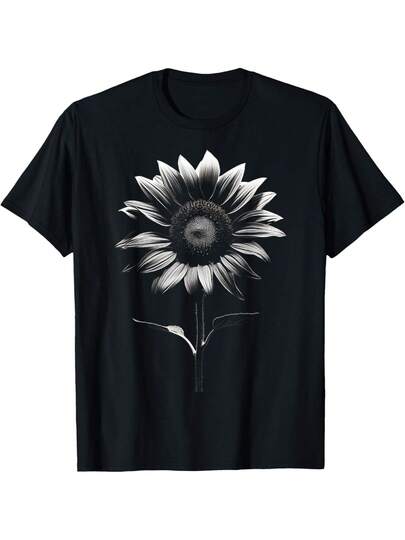 Sunflower Drawing Art Graphic Flower Motif Sunflower T-Shirt - Black - View 1