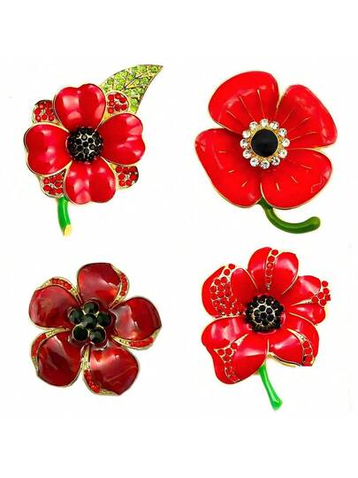 Red Enamel Poppy Flower Brooch, Gift For Remembrance Day In The UK - Multicolor - View 1