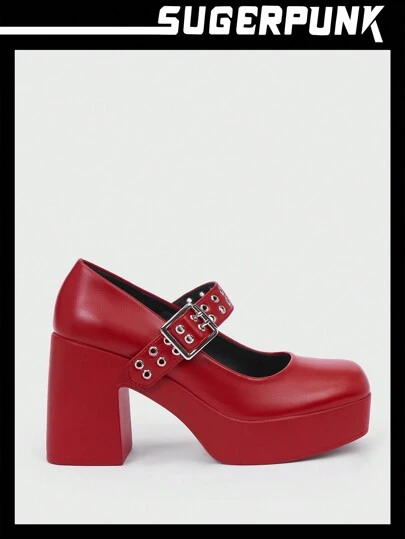 Sugerpunk Red Lolita Style Waterproof Platform Chunky Heel Sandals With Ankle Strap - Red - View 1