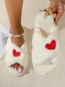 Fall/Winter Women Lightweight Anti Slip Criss Cross Home Slippers, Fashionable White Bedroom Slippers,Furry Shoes