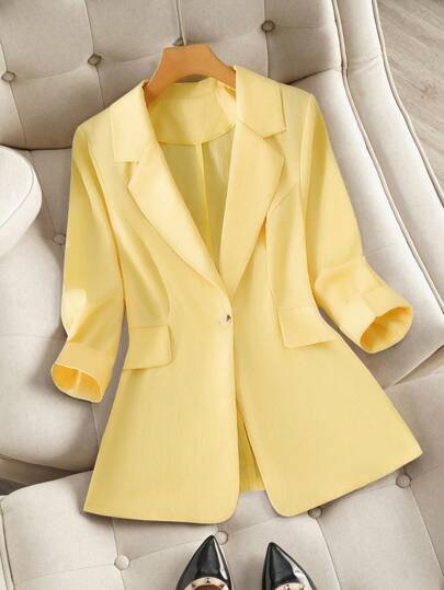 GlowEve CURVE Women's Plus Size Solid Color Simple Daily Long Sleeve Suit Jacket Graduation,Back To School,Teacher Outfits For Women Winter Fall Autumn - Yellow - View 1