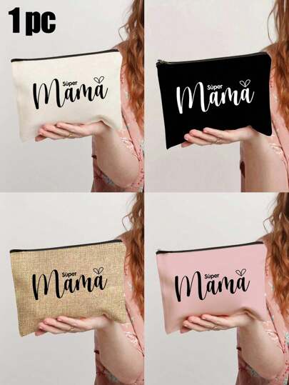 Letter "Mama" Printed Zipper Women'S Cosmetic Bag. The Best Gift For Mom, Bridesmaid Cosmetic Bag, Bridesmaid Gift Bag, Wedding Travel Washing Bag With Zipper, Bridesmaid Bag, Wedding Bride Shower Single Girls Proposal Party Gift - Multicolor - View 1
